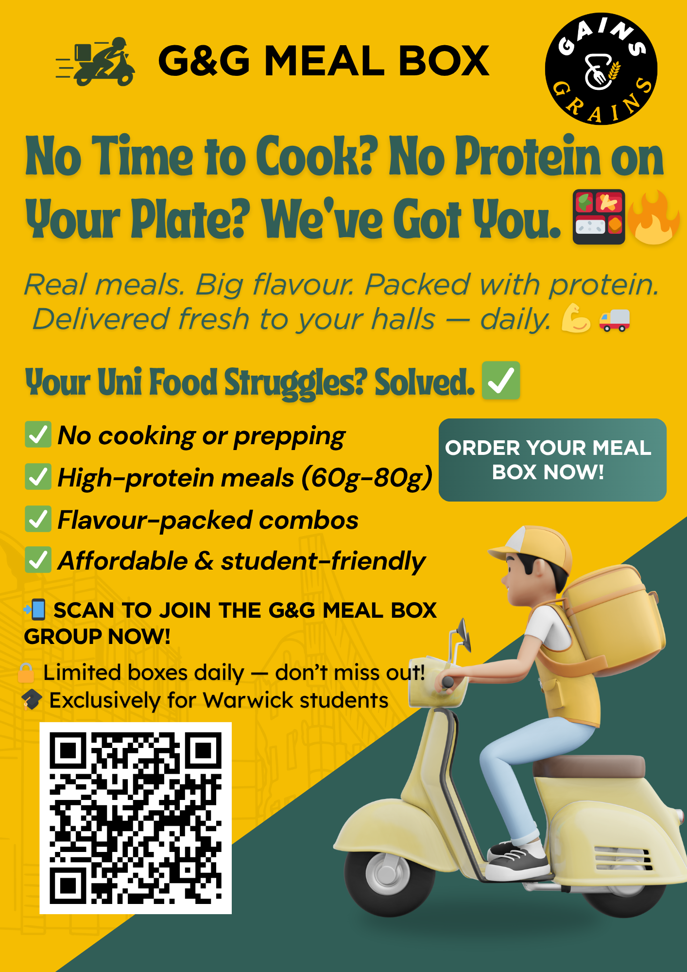 G&G Meal Box is our campus-only meal delivery service, designed specifically for University Of Warwick Students.